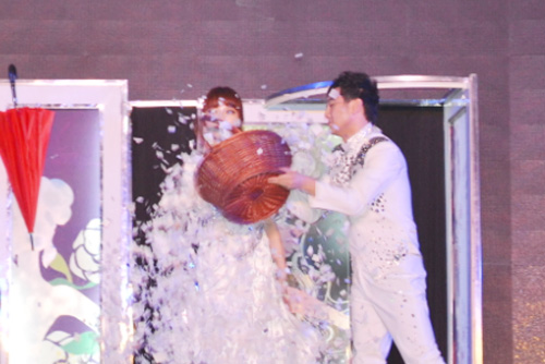 發布會的一大精彩環節是中國“魔王”傅琰東先生帶來的魔幻周末秀,無論是快速換衣秀、徒手變錢還是以水生金,傅先生的表演都讓現場尖叫連連,掌聲不斷。傅琰東先生在互動中也表示,在參觀過水云間項目之后,無論從景觀營造還是服務體驗的質感上,都讓他非常震撼與心動。