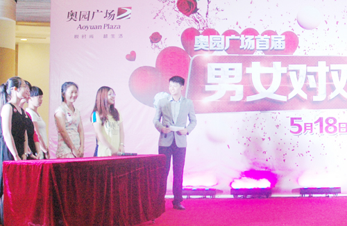 ?。?014年5月18日——廣州)520諧音“我愛你”,是現在年青男女對愛表達的日子,為了能夠給到年輕男女顧客互相認識、表達交友的機會,廣州番禺奧園廣場于5月18日舉辦大型的“男女對對碰”交友舞臺活動,吸引百余對單身男女報名參加。
