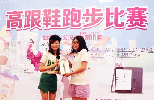 母親節高跟鞋大賽冠軍得主和主持人合影