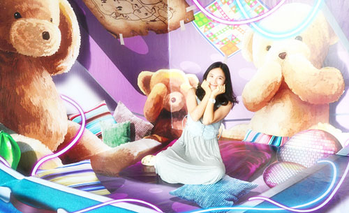 奧園3D魔幻藝術樣板房各路英豪在墻上呼之欲出,前來參觀的人們濟濟一堂、擺開pose,帶著哇塞的驚嘆聲和歡笑聲成為這里最美的音符,而不時躍動的閃光燈則成為獨特的標記。讓來訪者置身于金子滿地的富貴黃金屋、好萊塢場景般的欲望空間、22世紀的未來之家、跟著愛麗絲走進奇幻森林及美麗夢境、違反牛頓定律的盜夢空間、女孩喜歡的可愛教主……七大震撼視覺的3D主題,無不在昭示著這里是一處獨一無二的魔幻空間,謀殺了無數菲林。