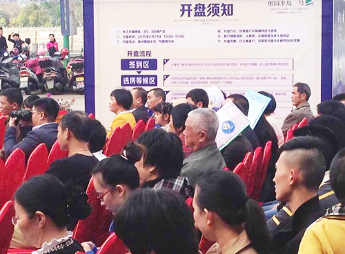 10點半,一場精彩的醒獅表演拉開了開盤活動的序幕,主持人開始叫號,準(zhǔn)業(yè)主們憑序號陸續(xù)進入選房區(qū)選房??蛻魝兓蚺c家人商討、或咨詢置業(yè)顧問,現(xiàn)場氣氛火爆。