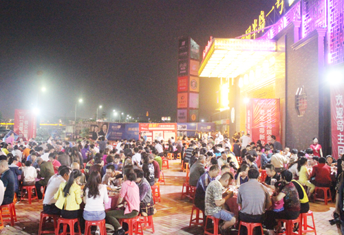 (2015年4月18日——梅州)4月18號,為感謝廣大新老業主的大力支持與認可,梅州奧園半島一號在銷售中心前廣場舉辦了“千人島主盆菜宴”首場業主答謝會及B9棟【領御】新品推介會。