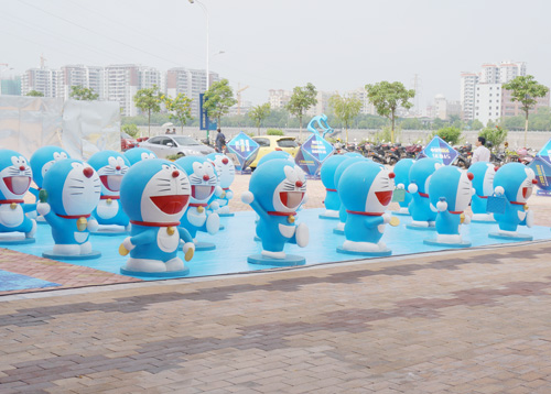 (2015年5月1日——梅州)一大波“藍胖子”于5月1日亮相梅州奧園半島一號,吸引梅州大小粉絲們到場與藍胖子一起賣萌合照。現場更準備了T-shirtDIY、兒童挖掘機、“藍胖子”電影等小活動,讓大家重溫陪伴我們成長的“藍胖子”回憶。