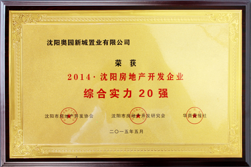 沈陽奧園榮獲“2014沈陽房地產(chǎn)開發(fā)企業(yè)綜合實力20強”