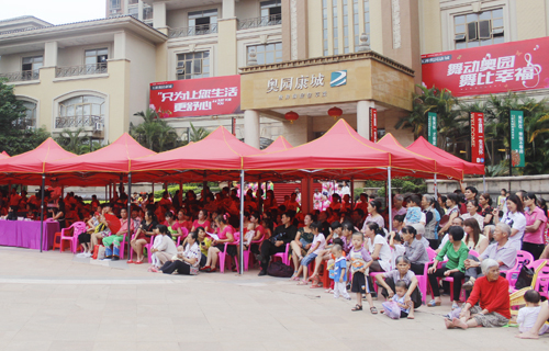 ??? ?5月23日、24日兩天,奧園康城首屆廣場舞大賽正式開啟海選環節。23日當天舉行的是民族舞海選,雖然天空下著雨,但絲毫沒有影響比賽進程,大伙兒熱情高漲。24日天空放晴,現代舞海選繼續火熱進行。68支參賽隊伍達1000多人,最終角逐出40強進入復賽,其他沒有晉級的28支隊伍也均獲得由奧園康城頒發的精美紀念品一份。