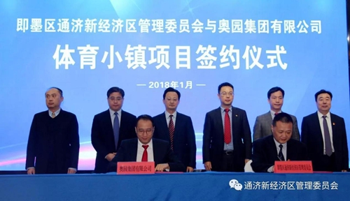 (2018年1月11日——青島)1月11日上午,即墨通濟新經濟區管委與奧園地產集團舉行《通濟新經濟區體育小鎮框...