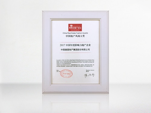 奧園榮獲“中國地產風尚大獎?2017中國年度影響力地產企業”