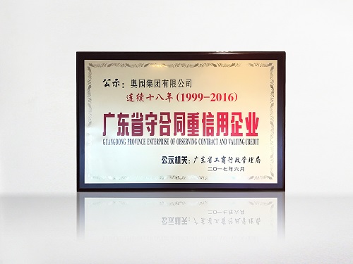 奧園連續(xù)十八年榮膺“廣東省守合同重信用企業(yè)”稱號