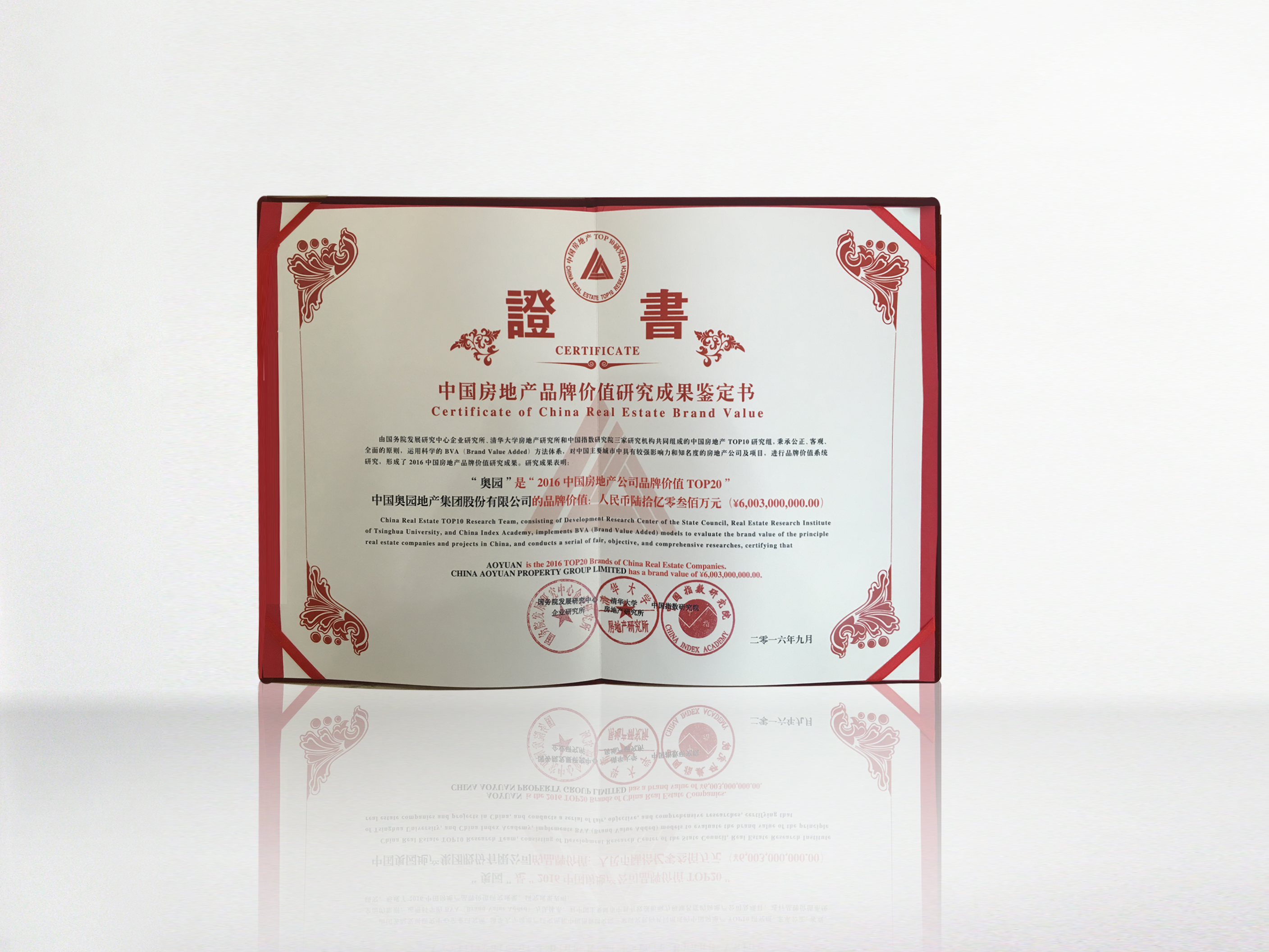 奧園榮膺“2016中國房地產(chǎn)公司品牌價(jià)值TOP20”第18名