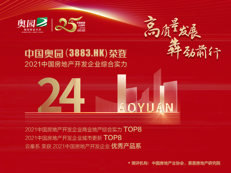 中國奧園榮獲“2021房地產開發企業30強”等四項大獎