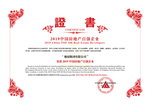 奧園集團榮膺中國房地產百強企業第26名 連續5年挺入30強