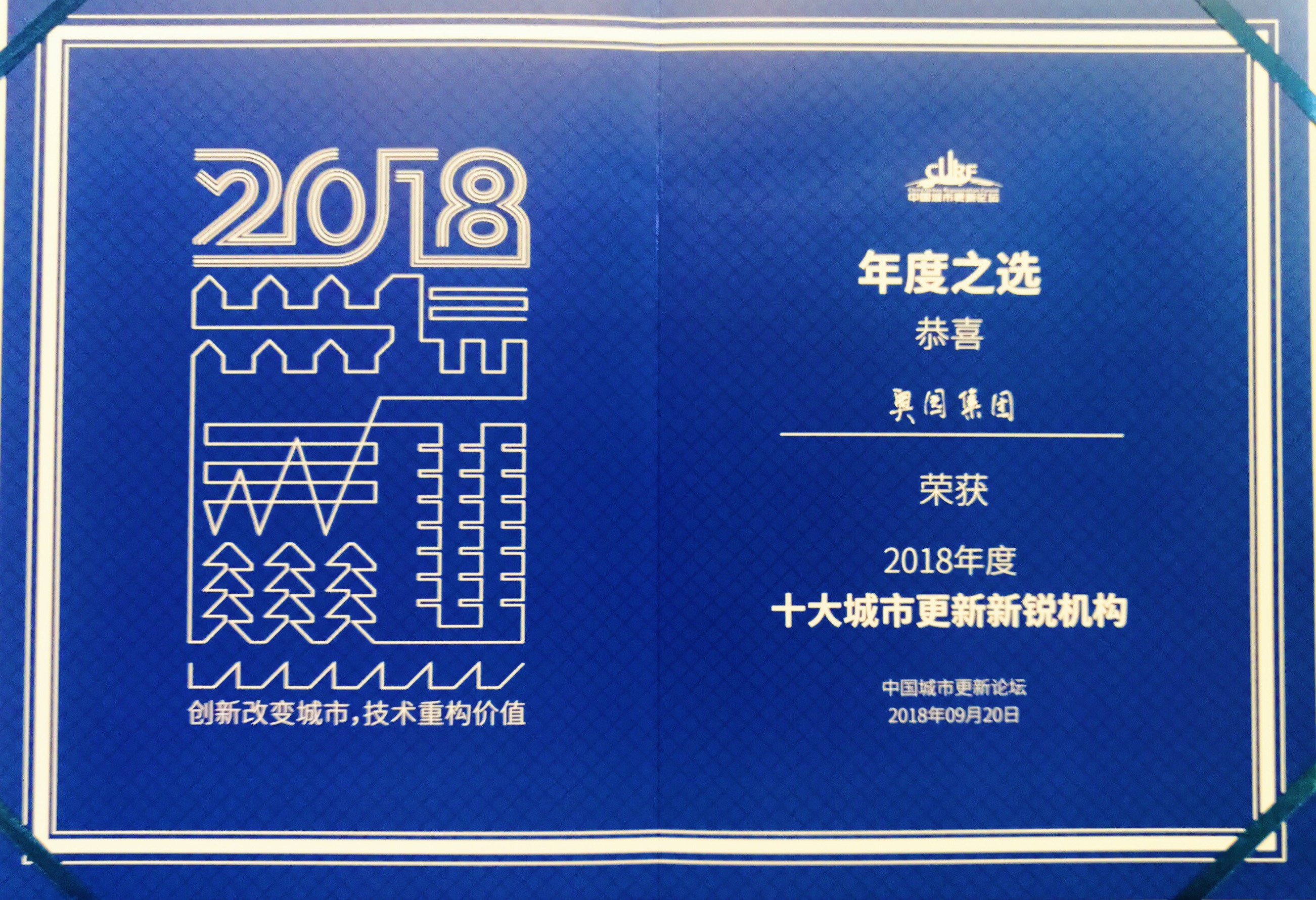 奧園榮膺“2018年度十大城市更新新銳機構”